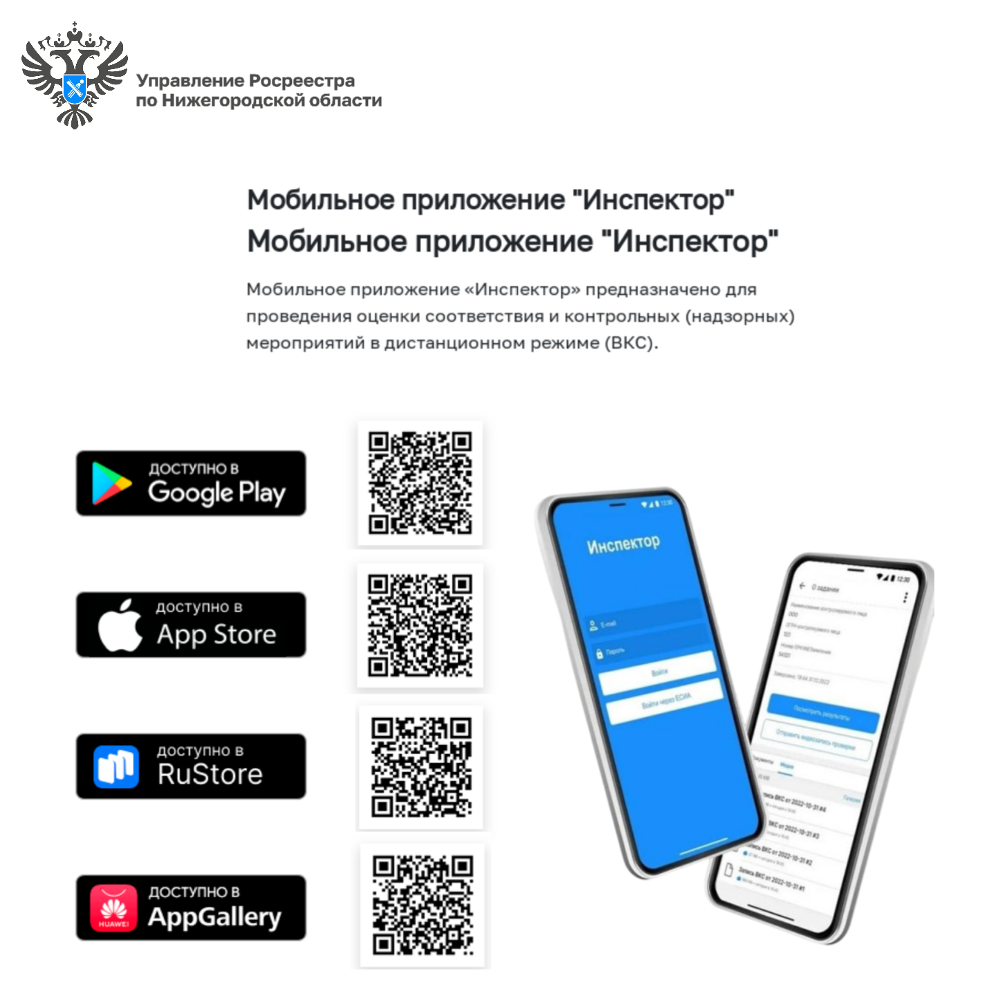 Росреестр по Нижегородской области информирует о дистанционных консультациях по земельному контролю через мобильное приложение «Инспектор».